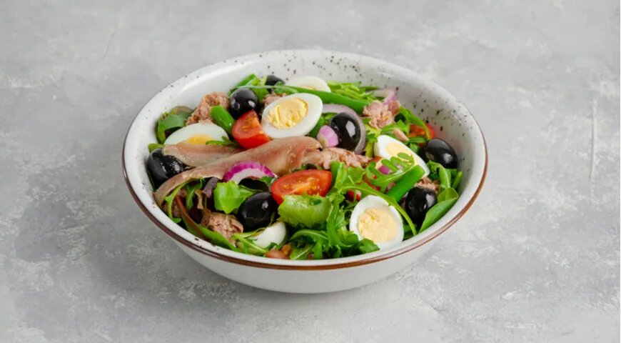 - Салат со спаржей, яйцом и беконом: легкий и питательный, идеален для перекуса.