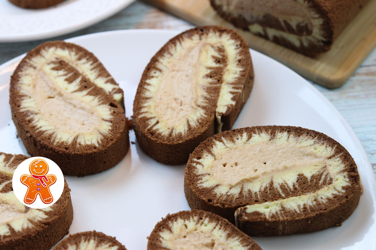Когда бисквит готов, он остужается, затем сворачивается в рулет с помощью бумаги и полотенца. Для крема взбиваются холодные сливки с вареной сгущенкой и добавляется какао-порошок. Остывший рулет аккуратно разворачивается и наполняется кремом, после чего снова сворачивается и оставляется в холодильнике на 1-1,5 часа.
