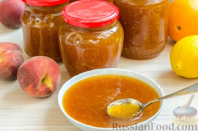 Персиковый джем — еще один восхитительный вариант заготовок. Добавление цитрусовых придаст ему уникальный вкус, а сочетание персиков с апельсином и лимоном создаст оригинальный аромат.