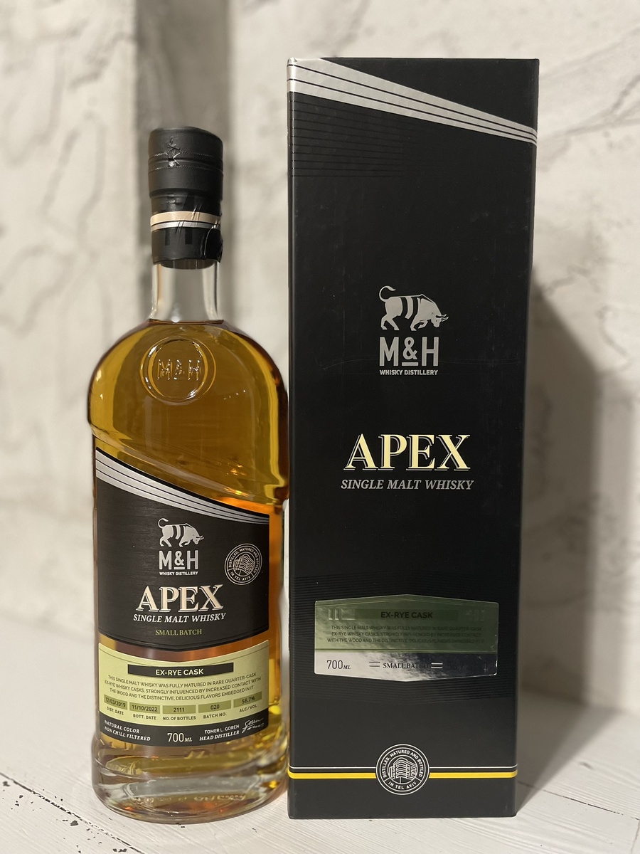 M&H Apex Ex-Rye Cask, с крепостью 56,7% ABV, был дистиллирован 12 марта 2019 года и разлит 11 октября 2022 года. Это батч №20, включающий 2111 бутылок.