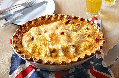 Накройте пирог оставшимся тестом, придайте краям рифлёный вид и смажьте поверхность взбитым яйцом. Не забудьте сделать небольшой надрез на крышке, чтобы пар мог выходить во время выпекания.