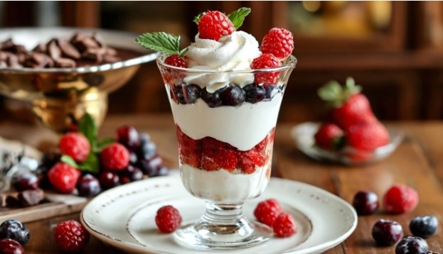 Для альтернативного варианта используйте свежие фрукты, йогурт или сливки и немного меда или сахара для сладости. Выложите слоями йогурт и нарезанные фрукты в прозрачной емкости. Разнообразьте текстуру, добавляя гранолу или орехи между слоями. Завершите шариком мороженого или взбитыми сливками, полейте медом или посыпьте шоколадом. Этот десерт станет настоящим фурором на любом столе!