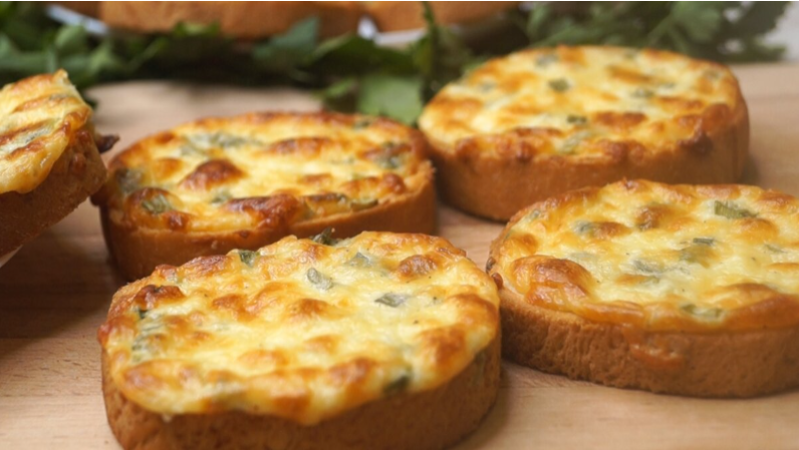 - Для дополнительной пикантности, натрите ломтики батона чесноком перед тем, как выкладывать начинку.