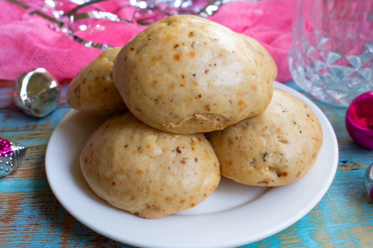 На противне или листе выкладывайте пергамент, смачивайте руки водой и формируйте небольшие пушистые шарики, расстояние между которыми не должно быть слишком маленьким. Поместите их в мантышницу, предварительно обернув крышку полотенцем, чтобы предотвратить капание воды на пряники. Накройте мантышницу и дайте пряникам готовиться 25-30 минут.