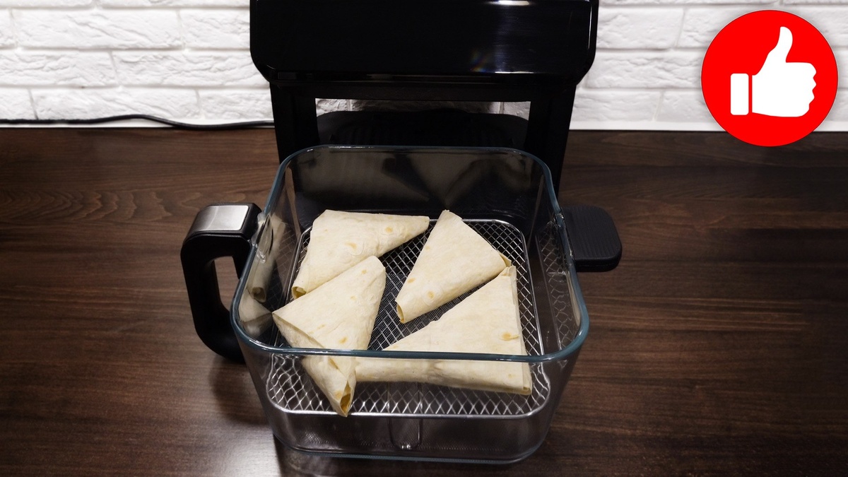Выложить полученные конвертики на верхнюю решетку аэрогриля. Обратите внимание: смазывать ни конвертики, ни решётку не нужно!