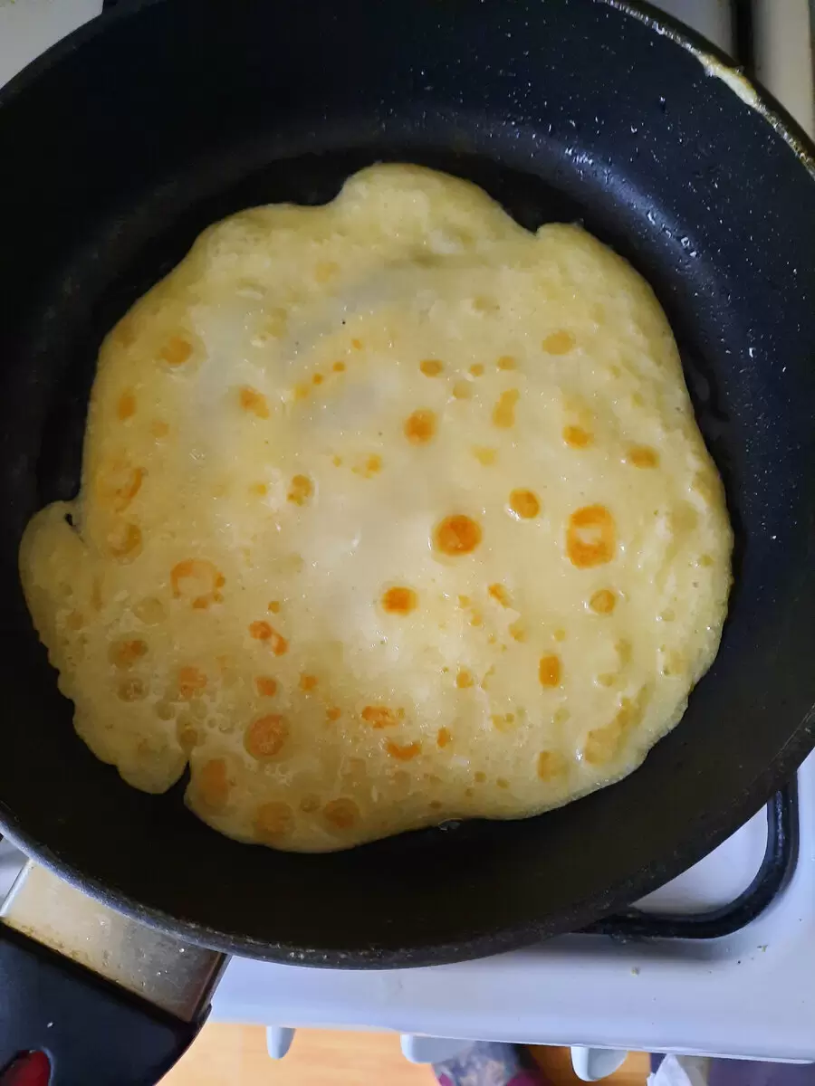 3. Нагрейте сковороду с антипригарным покрытием и аккуратно налейте тесто, выпекая тонкие блинчики. Когда они будут готовы, выкладывайте начинку и осторожно заворачивайте блинчики уголком. Это блюдо станет отличным угощением для всей семьи.