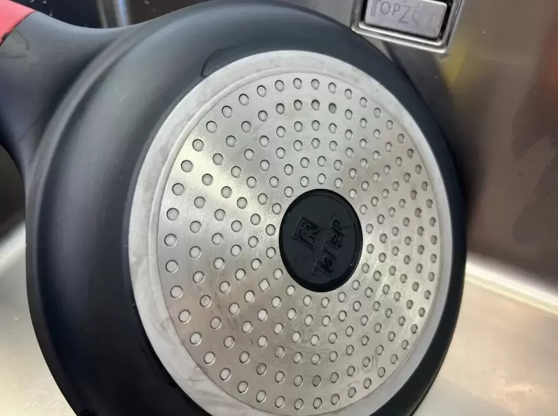 Как только сковородка нагрелась, следует немедленно нанести чистящее средство на проблемные участки — это особенно важно в тех местах, где есть налёты от жира или остатки пищи. Чем горячее поверхность, тем быстрее и эффективнее будет действовать средство.