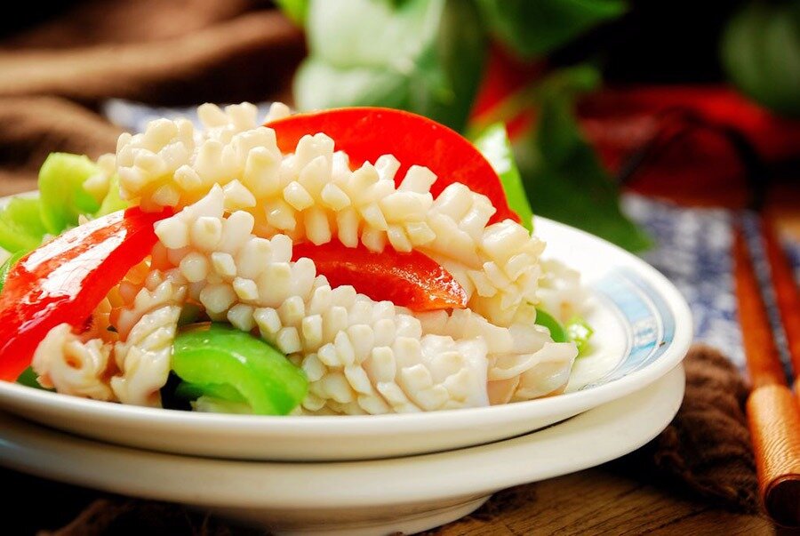 Начинайте с нарезки имбиря и лука, а также подготовки перца — нарежьте его кусочками в форме треугольников.Поскольку кальмар требует особого обращения, его следует разрезать вдоль и создать на поверхности насечки, чтобы он свернулся во время готовки.Затем доведите воду до кипения, добавьте Шаосинское вино и опустите полоски кальмара. Как только он свернется, вынимаем его.Смажьте сковороду маслом, добавьте нарезанные имбирь и лук, обжаривайте. Потом добавьте перец и кальмара. Приправьте солью и перцем. Важно не жарить долго, иначе кальмар станет жестким.Для загустения соуса добавьте растворенный крахмал и перемешайте. После того как соус станет полупрозрачным, блюдо готово!Вершина кулинарного наслаждения — ваше блюдо готово. Учитывайте, что с приготовлением справится даже новичок на кухне, а результат удивит даже гурманов!