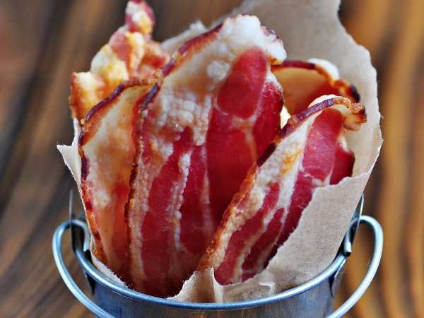 Такой способ приготовления делает бекон идеальным дополнением для блюд, бутербродов и бургеров, как в кафе, так и дома. Интересно, что после остывания бекон остается ненадолго хрустящим и отлично подходит в качестве закуски к пиву.