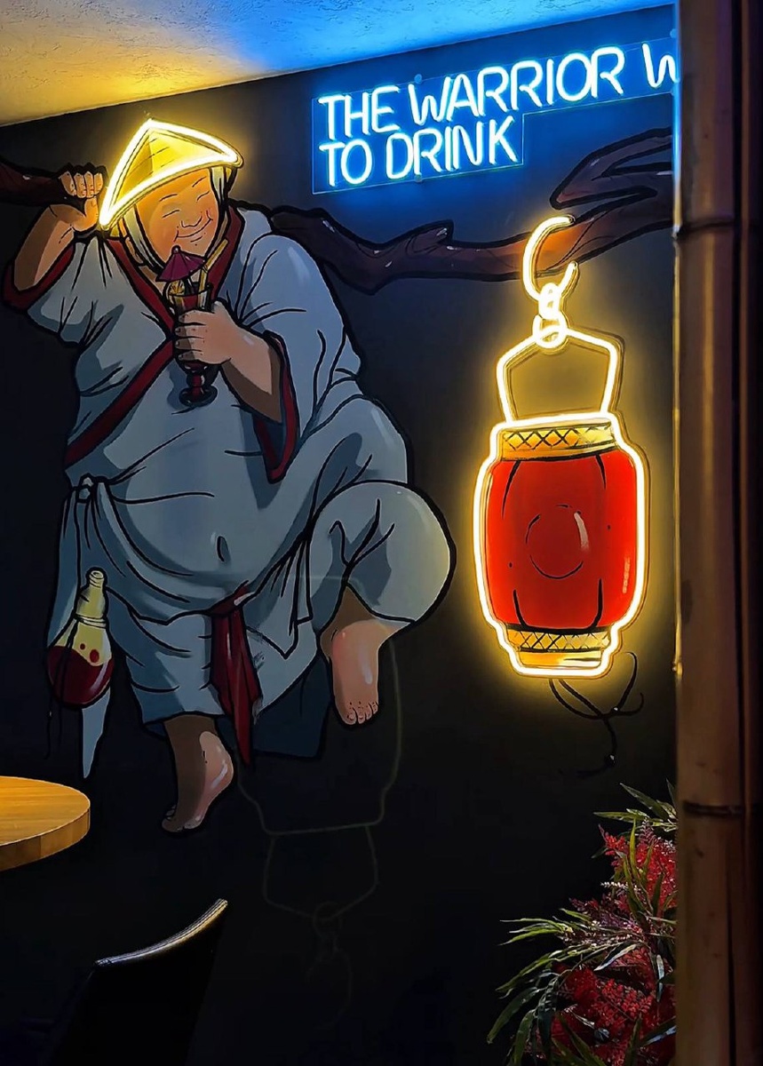 Название заведения вдохновлено легендарной рекой Меконг, и этот дух ощущается в каждом элементе интерьера: потолок, украшенный красными свисающими нитями, напоминает о течении воды, а неоновые огни, арт-объекты и драконы создают атмосферу настоящего восточного уюта.