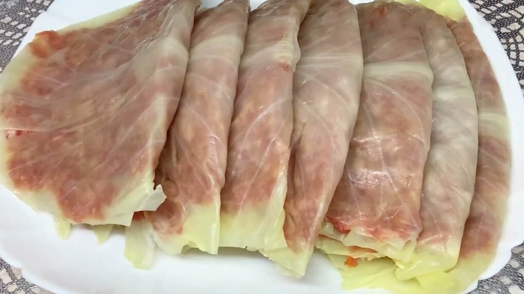 - Капустные листья нужно предварительно слегка отварить, как для голубцов. Следует удалить жесткую срединную часть. Если капуста плотная, можно аккуратно отбить листья или прокатать их скалкой для лучшей гибкости.