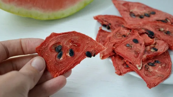 - Сушеный арбуз великолепно подойдет как перекус, а также станет отличным дополнением к мюсли, йогурту или десертам.