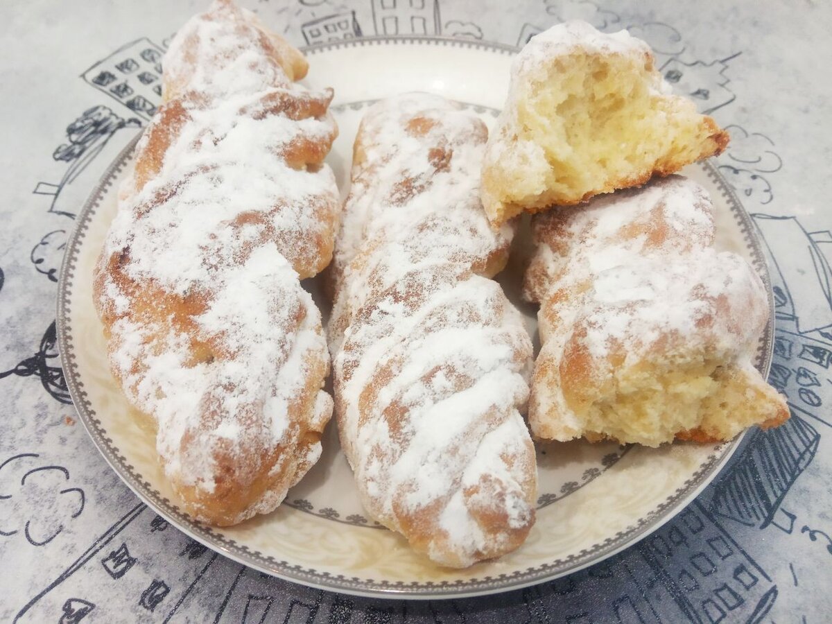 Выложите булочки на противень, застеленный пергаментом, и посыпьте сахарной пудрой по вкусу.