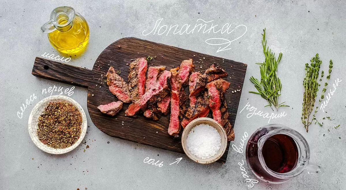 - Стейк из лопатки: Этот мясной кусок обладает насыщенным вкусом, который можно разбавить простым маринадом на основе красного вина.