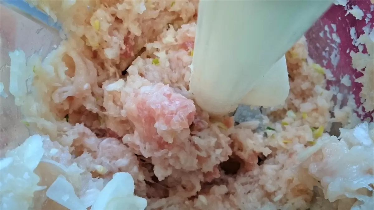 Фарш можно приготовить самостоятельно или использовать готовый. Оптимально смешать его с луком и чесноком с помощью блендера. Затем в массу добавляют яйцо, рис, соль, перец и специи. Рис предварительно не отваривают, а лишь промывают и немного замачивают. Он прекрасно приготовится вместе с фаршем, хотя при желании его можно отварить до полуготовности.