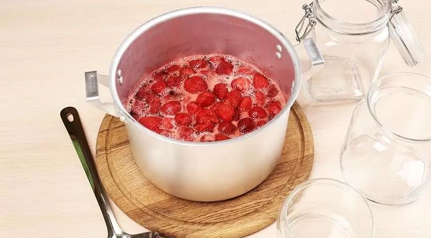 Этот метод также предполагает соотношение 1:1 между ягодами и сахаром. Ягоды засыпают сахаром и оставляют постоять от 4 до 12 часов, в зависимости от сочности плодов. После этого их вновь перемешивают, ставят на сильный огонь и доводят до кипения, продолжая помешивать и убирая пену. Время варки составляет 5 минут. Затем варенье разливают по банкам, как и в предыдущих методах.