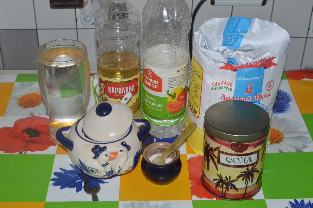 Для успешного приготовления блинов следует заранее подготовить все необходимые ингредиенты. В глубокой миске нужно налить воду и добавить сахар, соль и соду, предварительно погашенную уксусом. Затем приступить к добавлению муки — важно тщательно перемешать массу до получения однородного теста.